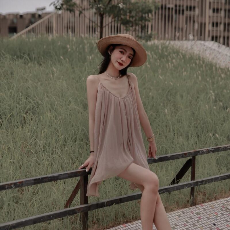 浪漫細肩後綁帶露背上衣裙