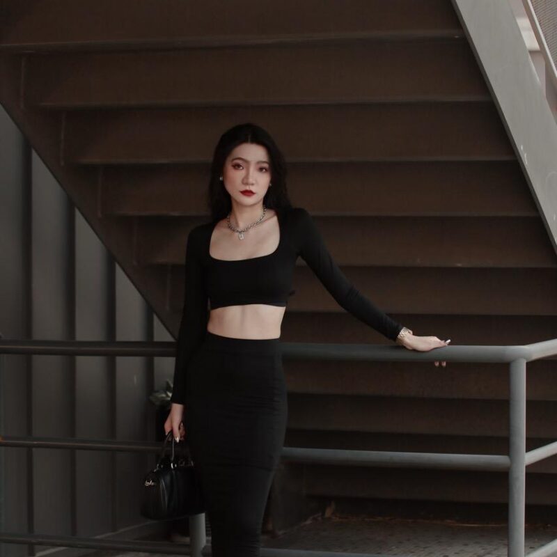 極短版上衣半裙兩件式套裝