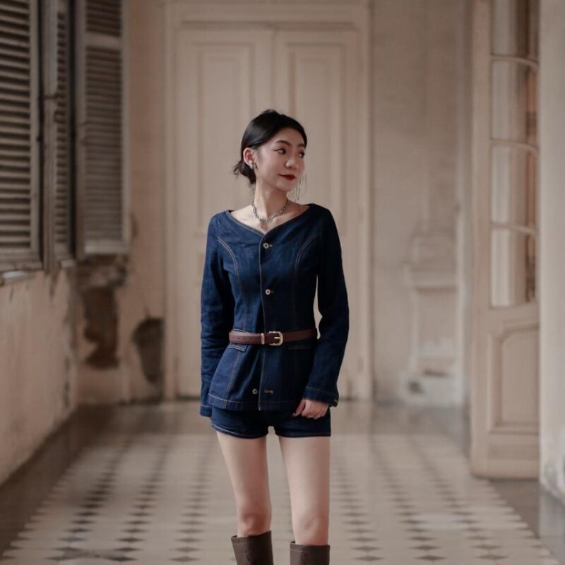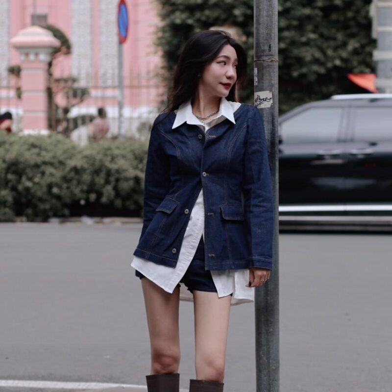 復古牛仔上衣短褲兩件套