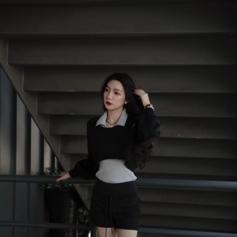 性感削尖厚實毛衣套裝