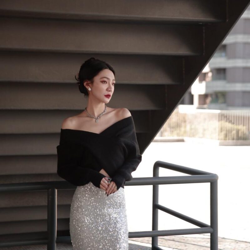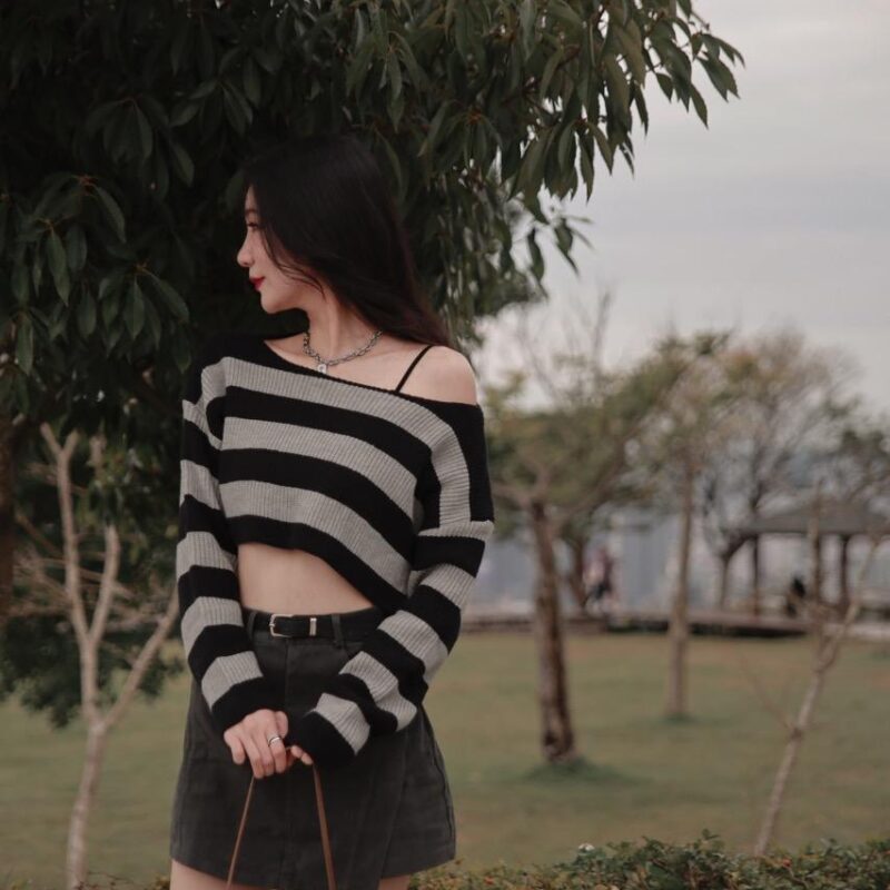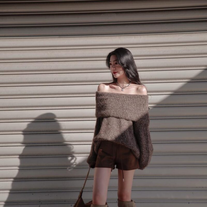 性感多穿法寬鬆混色毛衣