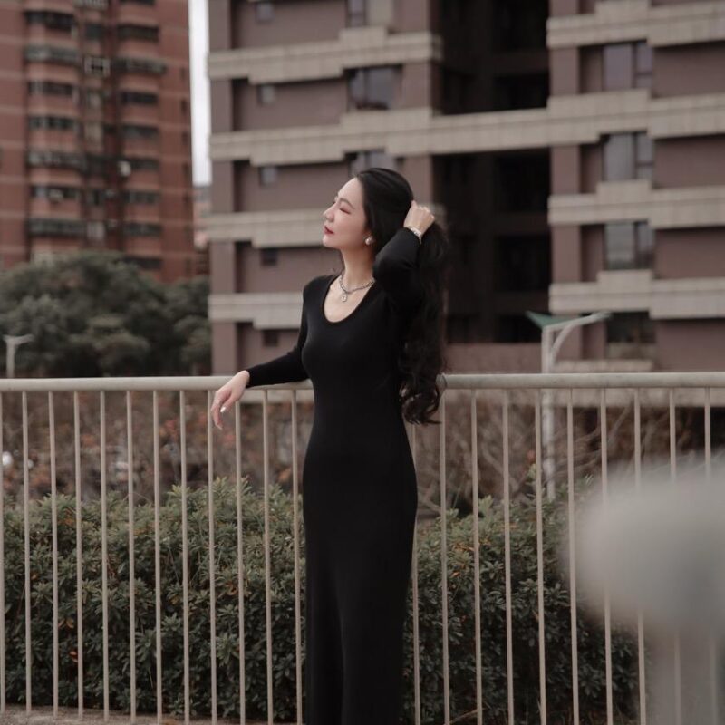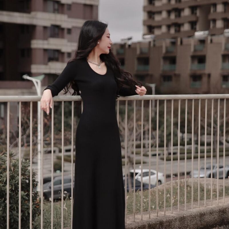 厚實份量感圓領針織長洋裝