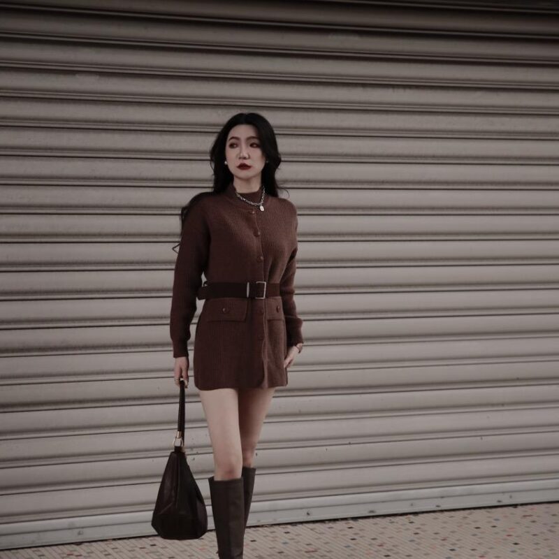 氣質小香風針織連身洋裝(附腰帶)